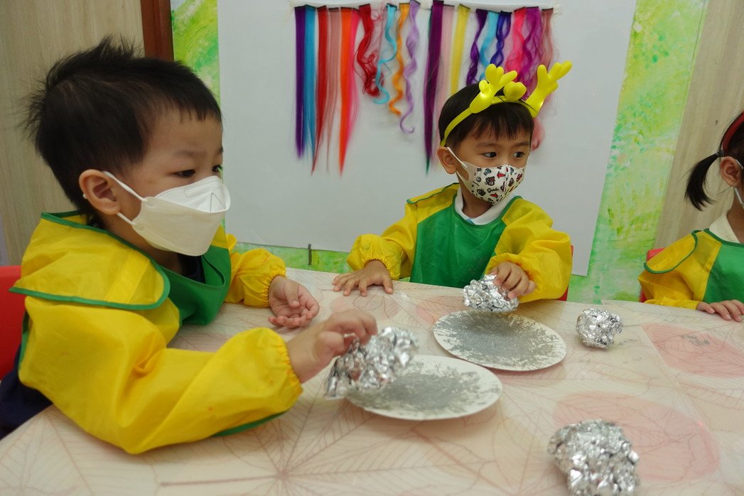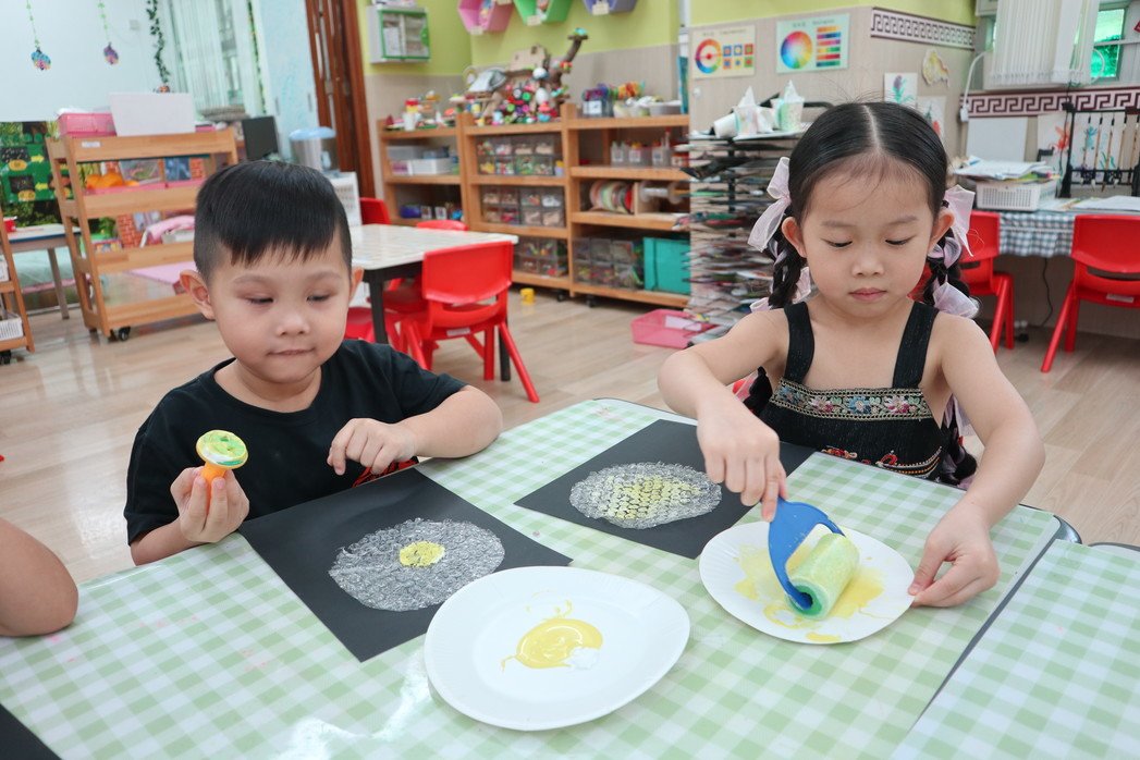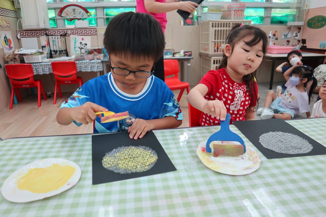 Instruct children to utilize materials with different tactile sensations and textures during art activities, empower them to unleash their creativity, express personal feelings and develop their aesthetic sensibility.
