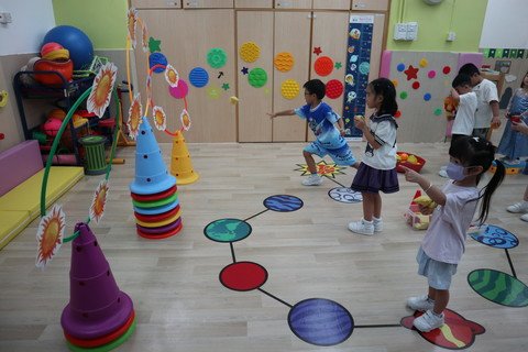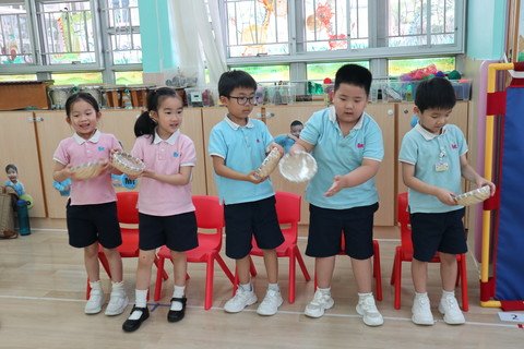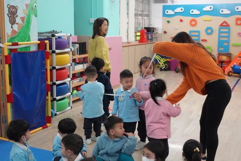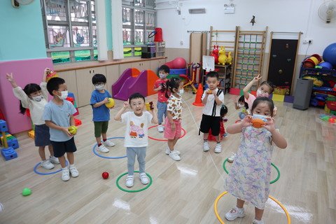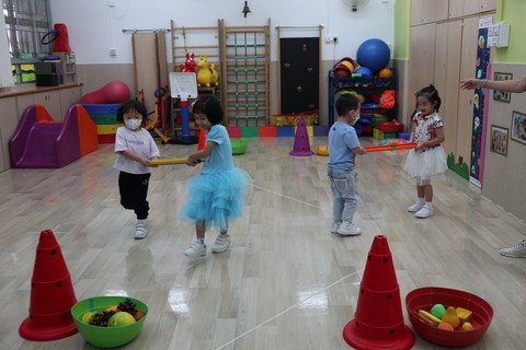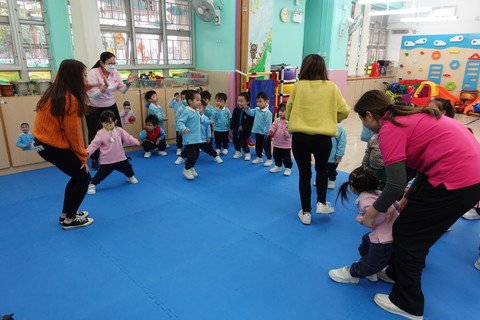 Organize a wide variety of music activities and dramas to study different music and perform physical movement creations, in order to increase children's creativity and imagination. Carry out various physical activities, skills training and group games to train up the gross-motor coordination.