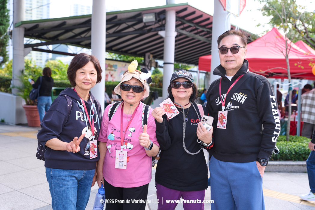 為配合《Snoopy新春遊》主題,凡報名參加是次慈善步行均可獲贈Snoopy步行通行證乙張。今年活動更特別推出了3款限量紀念品,包括紀念髮箍、短款手機繩及手機指環支架,獲市民踴躍支持認購。不少參加者更佩戴限定紀念髮箍參與步行,氣氛熱烈,洋溢活力。