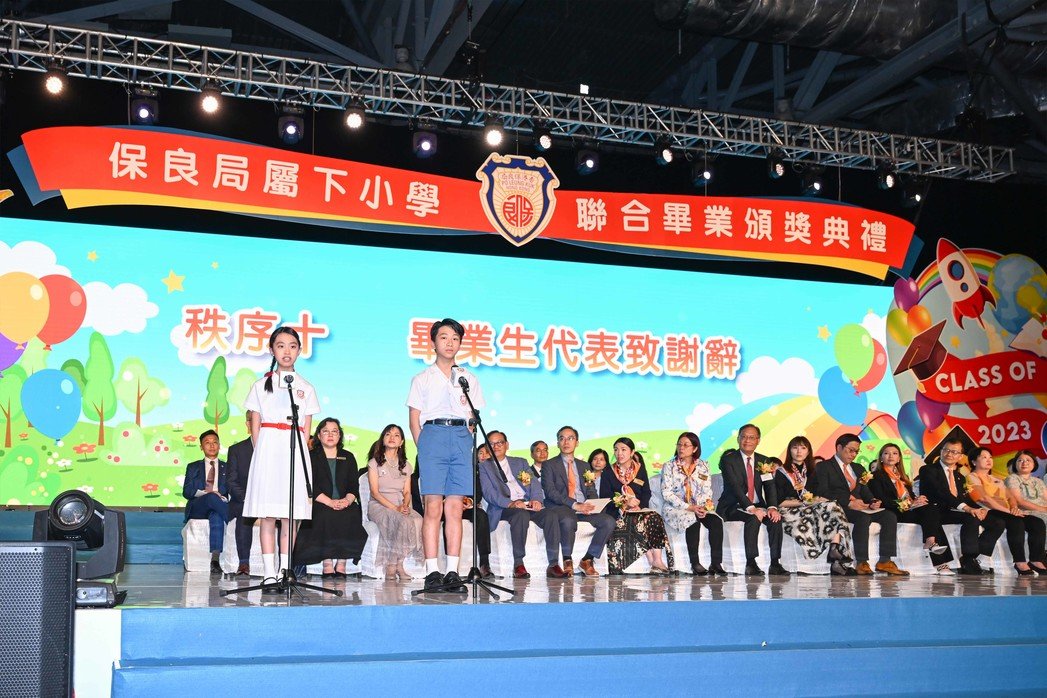 (2023年6月30日) 保良局作為全港最大辦學團體之一,屬下設有20間資助小學、4間直資小學及1間新來港學童啟動課程學校,一直致力培德育才,為學生提供優質的全人教育,為社會培育出不同界別的人才。25間屬下小學於6月27日假香港亞洲國際博覽館舉行「保良局屬下小學聯合畢業頒獎典禮」,邀得香港都會大學校長林群聲教授SBS, JP蒞臨主禮、頒發畢業證書及獎學金。隨著疫情漸退,典禮重回亞洲國際博覽館舉行,約6,000名學生和家長一同出席,見證一眾畢業生的人生里程碑。