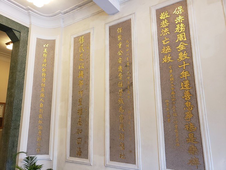• 保良局过去主要悬挂木对联,迁局后改用石刻对联